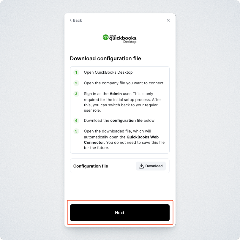 You must have the QuickBooks Web Connector installed on your computer to proceed with the subsequent steps