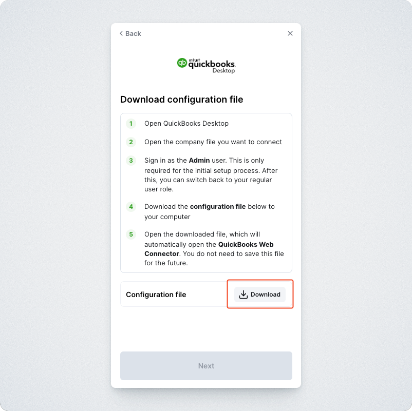 Download a QuickBooks Web Connector configuration file