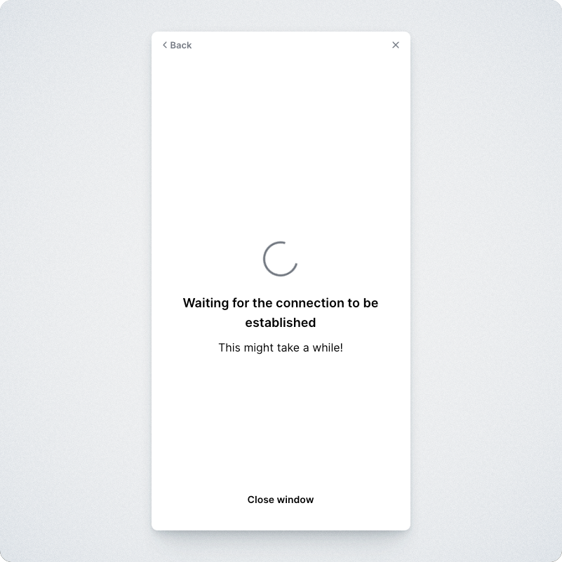 You will then see the below page in the linking flow. The connection could take up to a minute to establish. If it eventually fails, see the troubleshooting steps listed below.