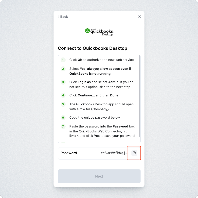Step 5: Enter your password in QuickBooks Web Connector