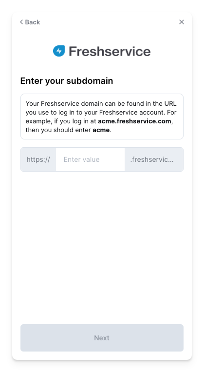 Once you have the original subdomain, you can use it in the linking flow to connect your Freshservice account.