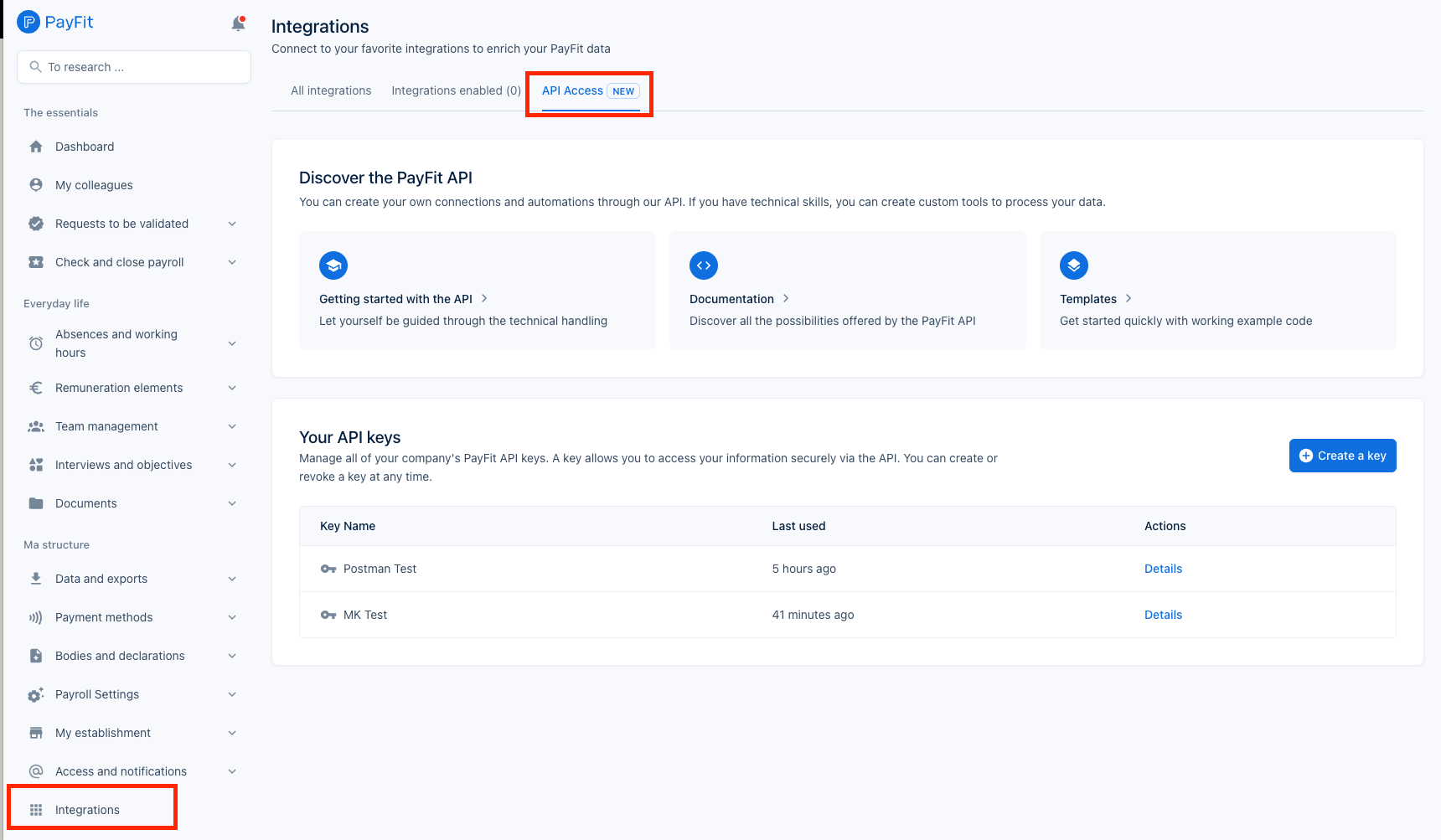 You must be an admin in PayFit in order to generate an API Key.