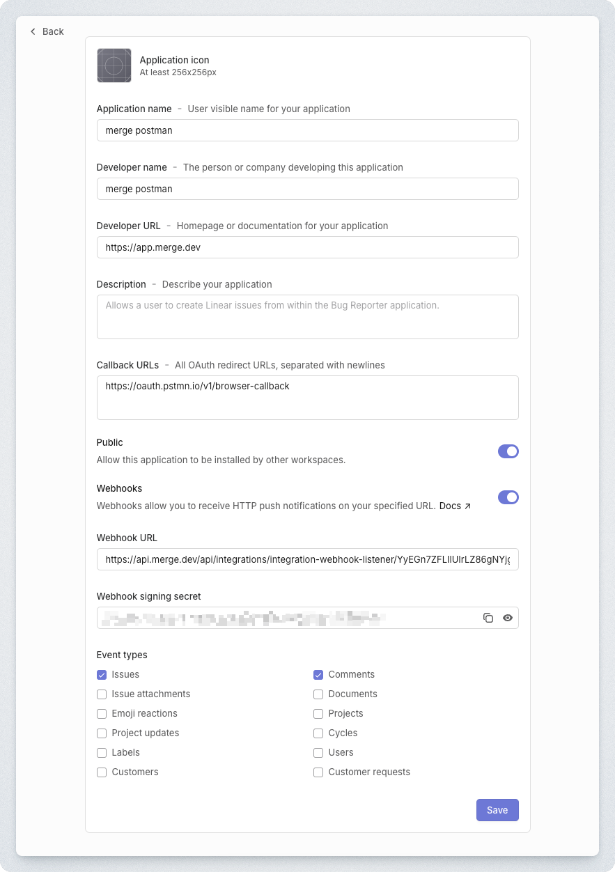Step 3: Input the signing secret into Merge