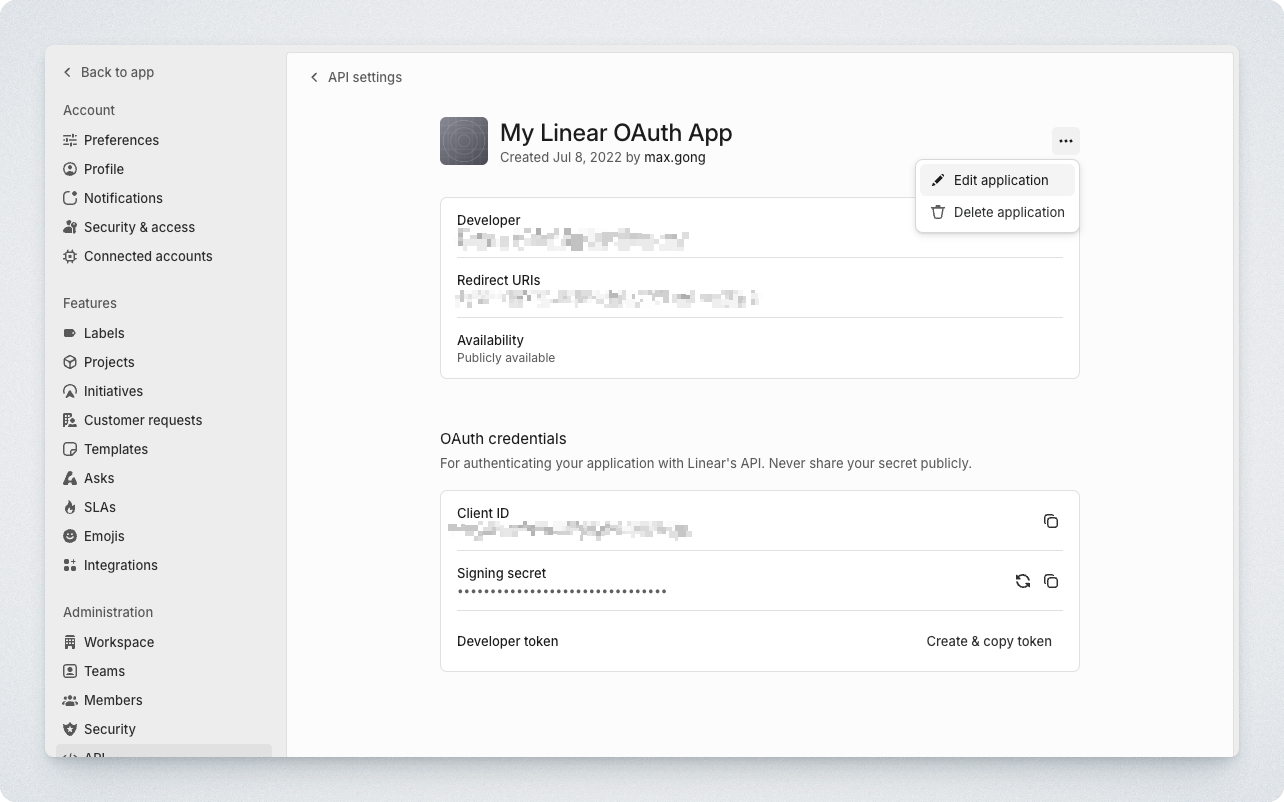 You have created your own Linear OAuth developer app