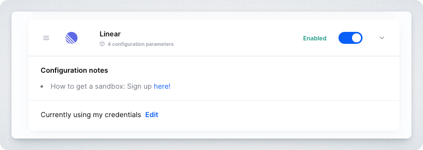 This guide will walk you through how to set up third-party webhooks for Linear. After the steps in this guide are performed once, all existing and future Linear Linked Accounts will support automatic third-party webhooks.