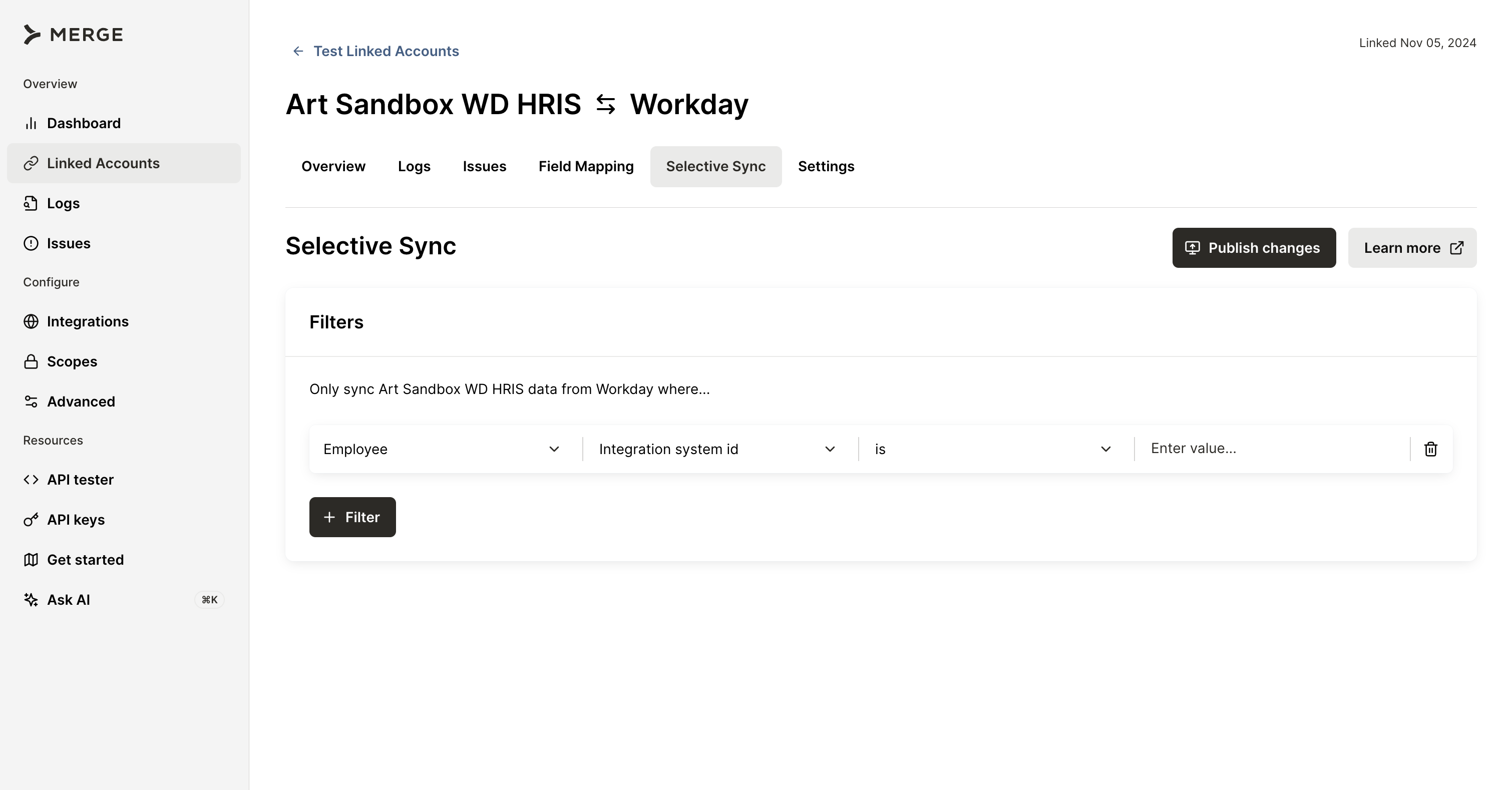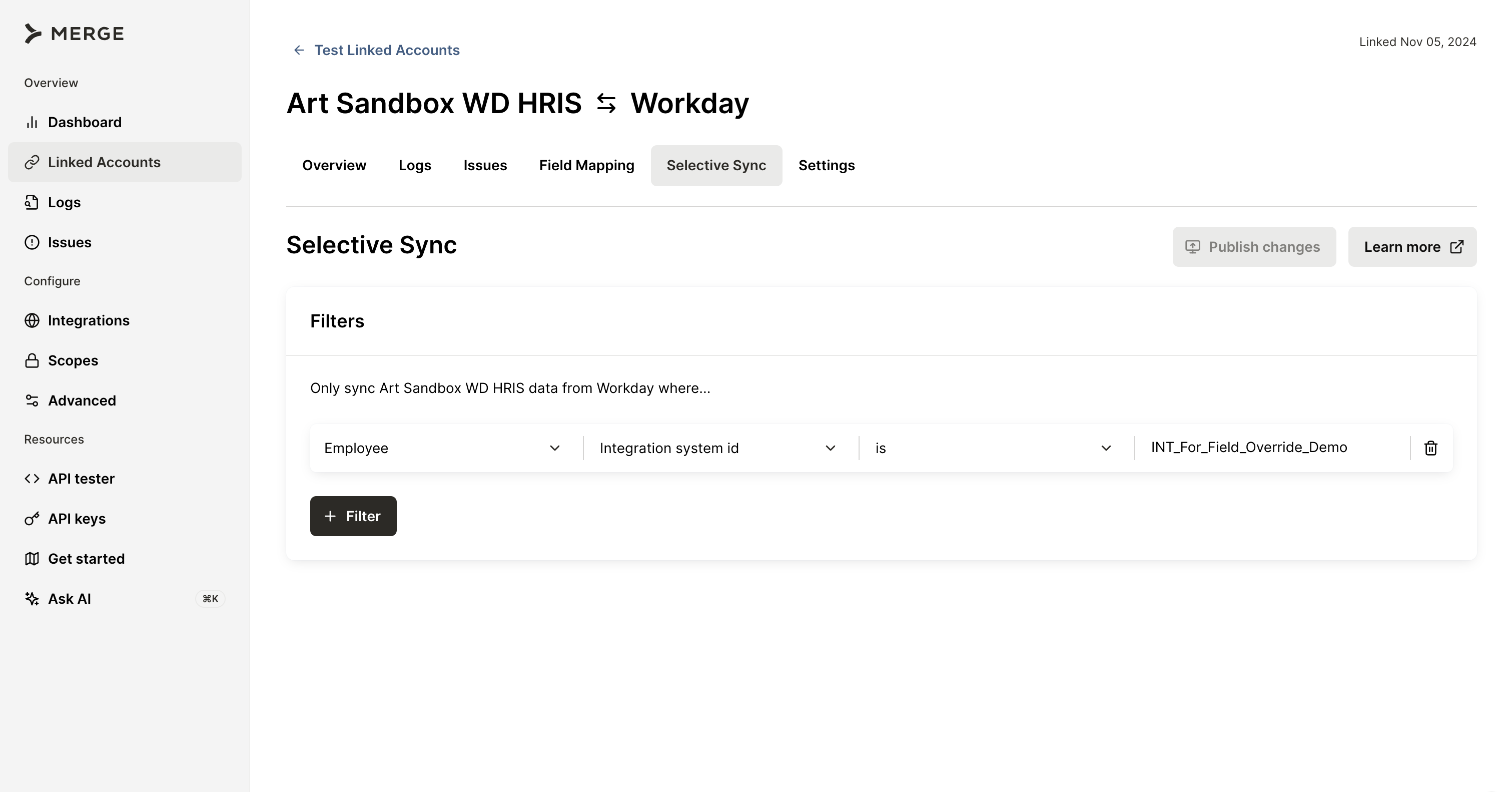 Navigate to the Selective Sync tab in your Workday Linked Account