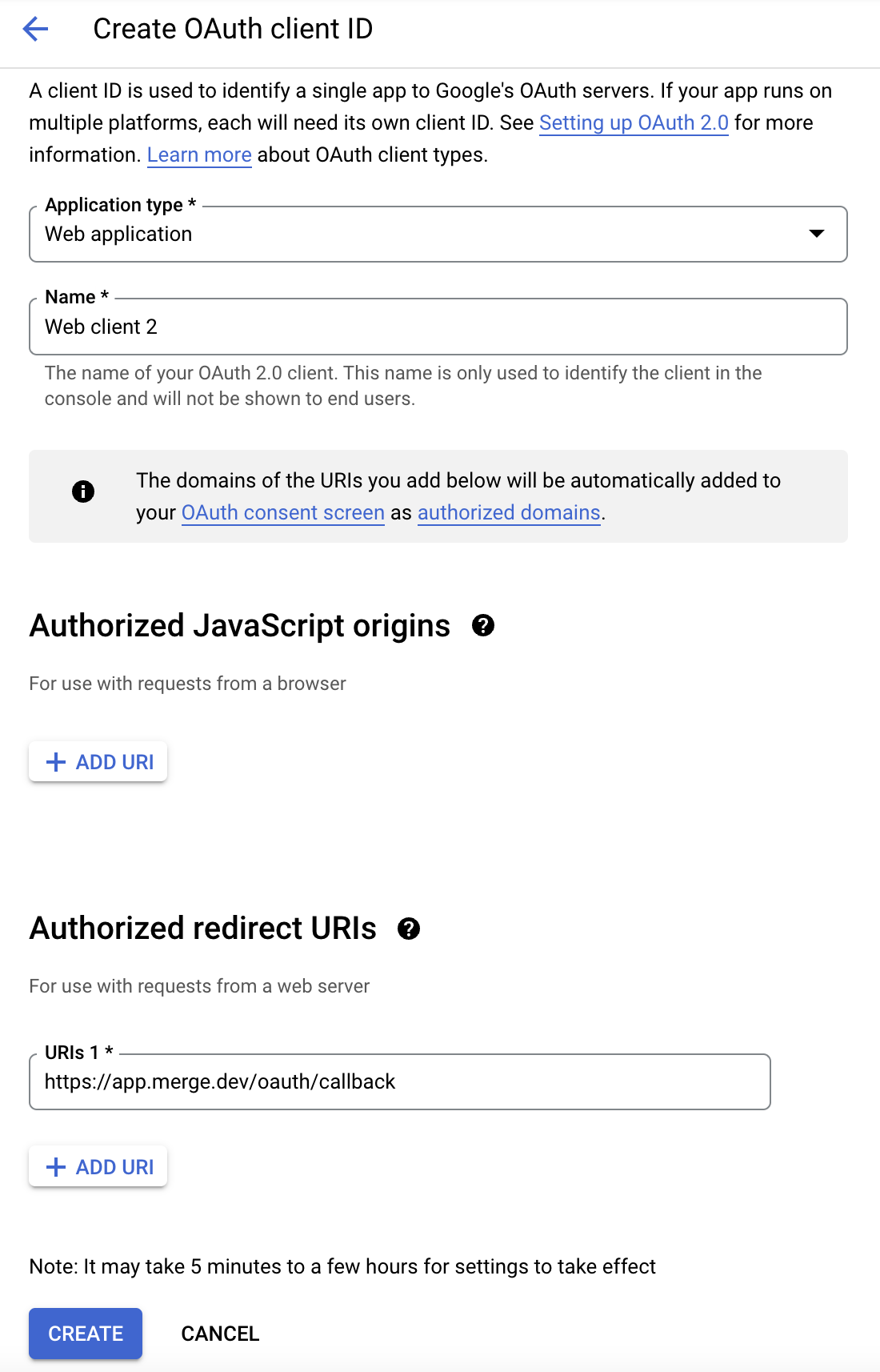 Add the Merge Redirect URI as https://app.merge.dev/oauth/callback.