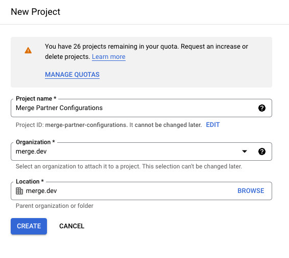 The process begins with the Merge customer creating a Google Cloud Project and submitting an application. Below are the steps you need to take in the GoogleCloud Console as well as the Scopes relevant for Merge's File Storage integrations.