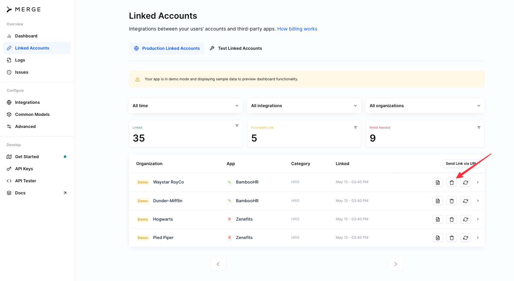 To remove a Linked Account in the dashboard, all you'll need to do is go to the Linked Accounts tab, locate the account you'd like to remove, and click the trash can over to the right!