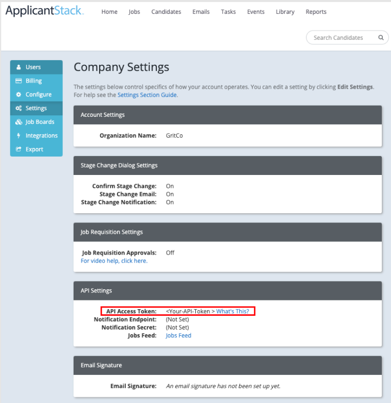 This guide will walk you through finding or creating those credentials within ApplicantStack.