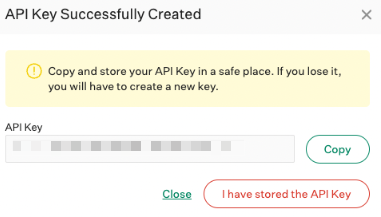Note that you will not be able to copy this API Key again, so please store it somewhere safe!