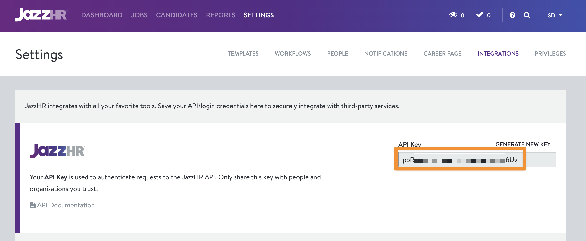 Step 1: Retrieve your API key from JazzHR
