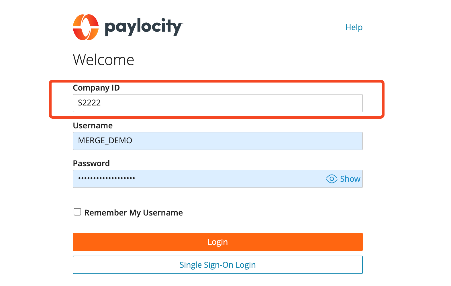 Company IDs are case-sensitive, so please enter it exactly as it appears in Paylocity