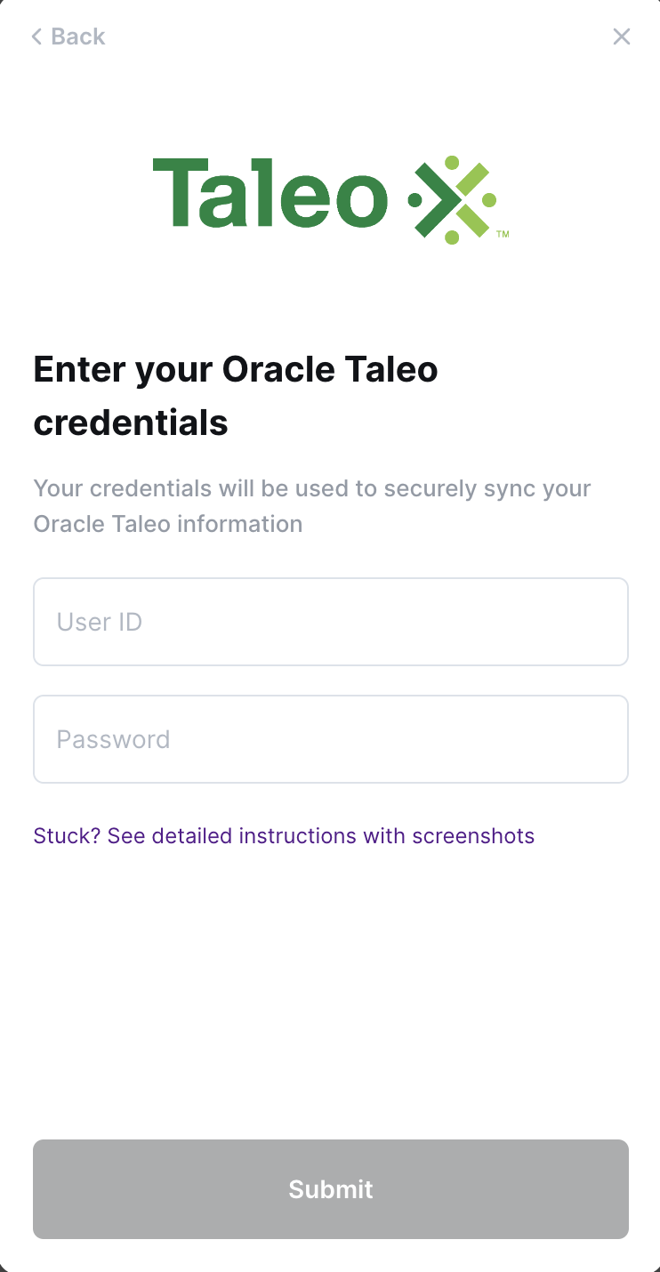 Step 7: Enter your Taleo credentials into the linking flow