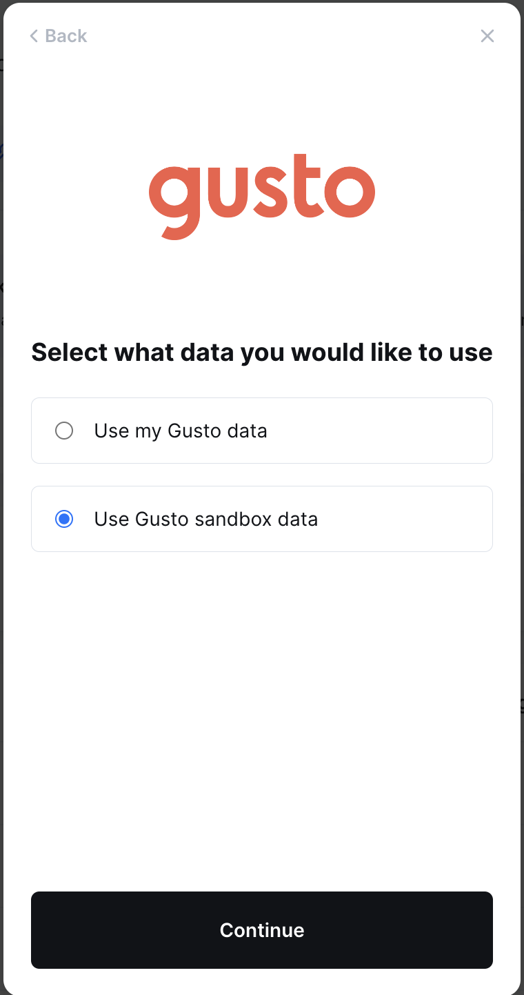 Make sure your Gusto account is a Gusto demo account. A Gusto demo typically has"[email protected]" as the URL.