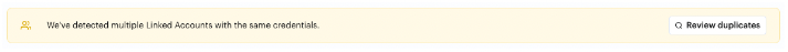 When Merge detects duplicate Linked Accounts, we will flag those accounts in the Dashboard so that you can take action on them. The icon below will appear next to the account.