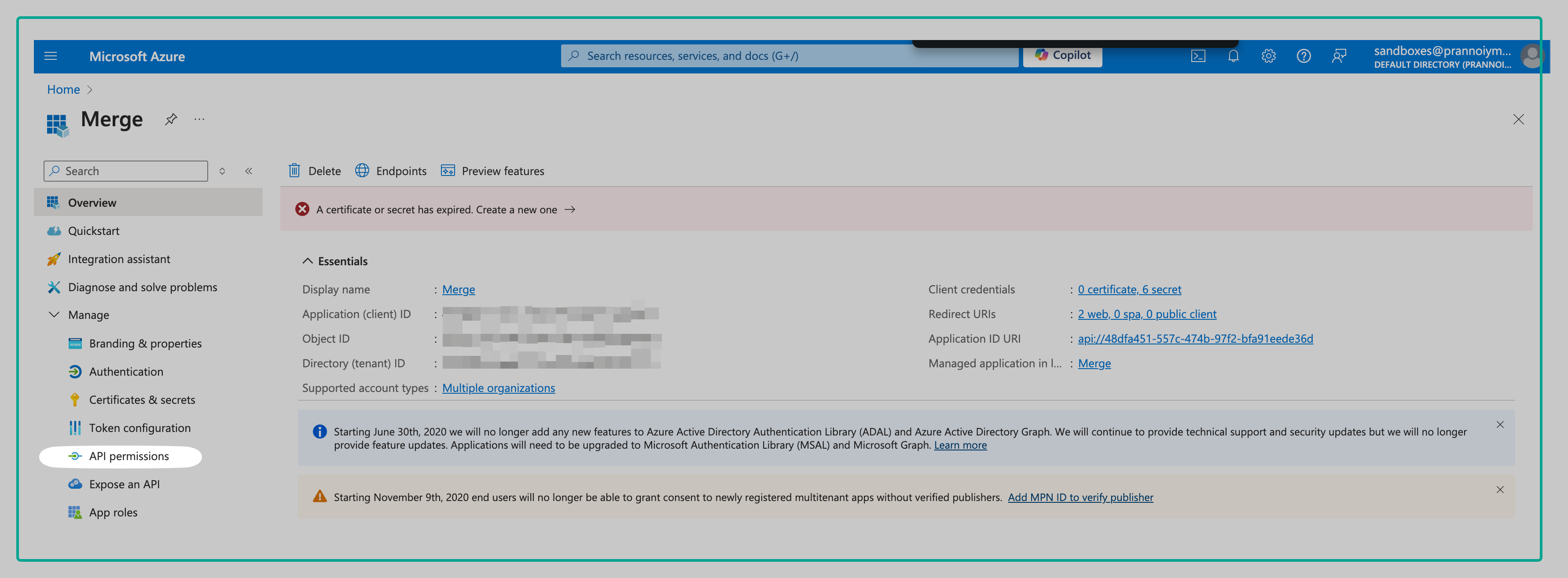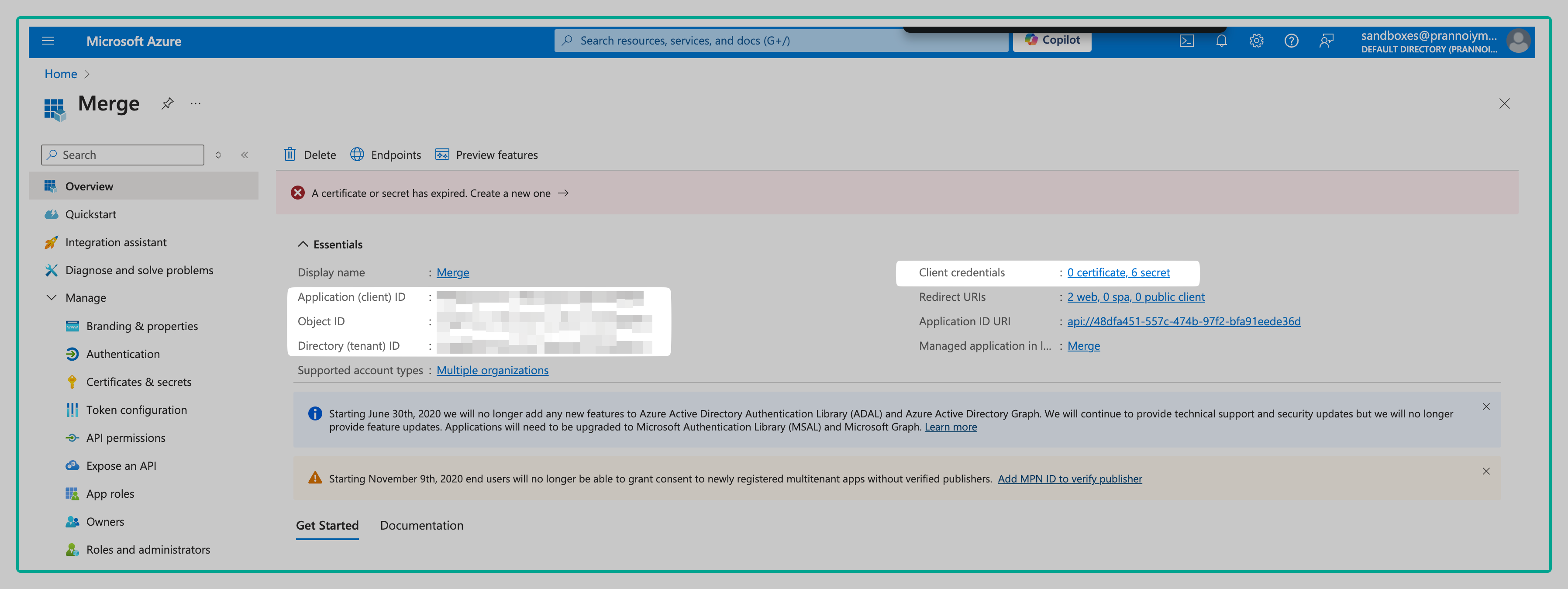 Note: Merge will refresh your credentials automatically before it expires - the default expiration is 180 days from creation. This will prevent your Linked Accounts from disconnecting due to a expired client secret. The new description for the refreshed client secret will "Merge OAuth App Password" + .