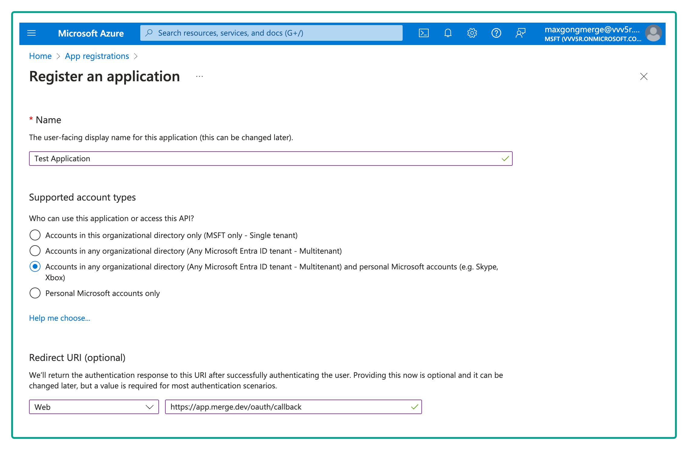 This guide will walk you through the steps to register your web application Entra ID and then enter your client credentials into Merge. This will allow your customers to connect their accounts using OAuth.