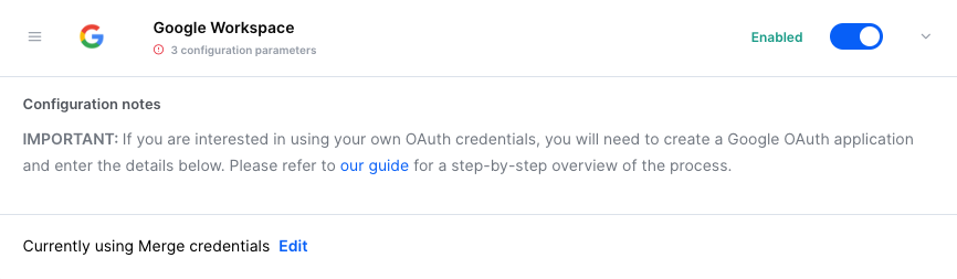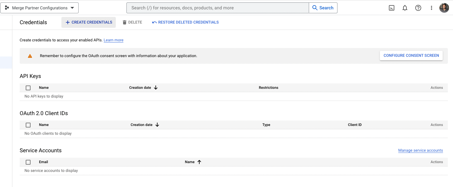 This guide will walk you through the steps generate your client credentials within Google Workspace and input them into Merge. Note that partnership is not required for the Google Workspace integration to work.