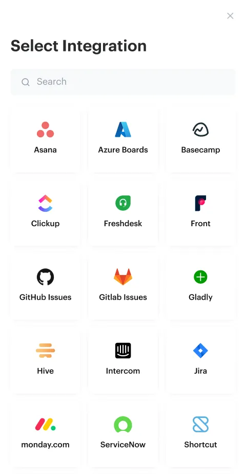 Embedding Merge’s Unified Ticketing API into your product allows your users to have access to Zendesk, Intercom, Salesforce Service Cloud, Gorgias, Help Scout, Freshdesk, Zoho Desk, and many many more!