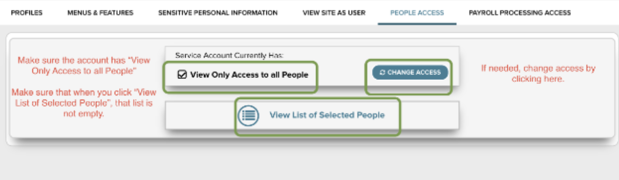 Troubleshooting Tip 2: Ensure your Service Account has access to the Employee Census Report.