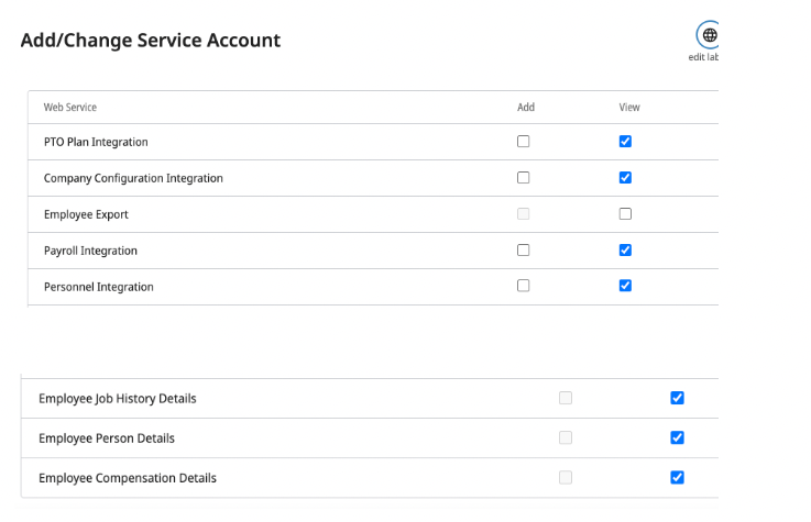 Troubleshooting Tip 4: The Service Account must have access to Employee Person Details to authenticate with Merge Link, as shown in Step 2.4