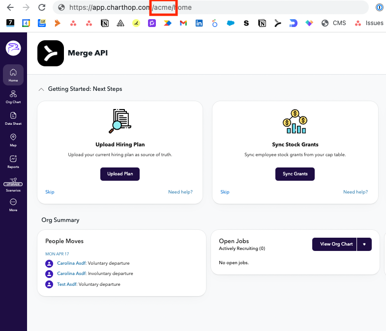 If your ChartHop URL is "https://app.charthop.com/acme/home", add acme