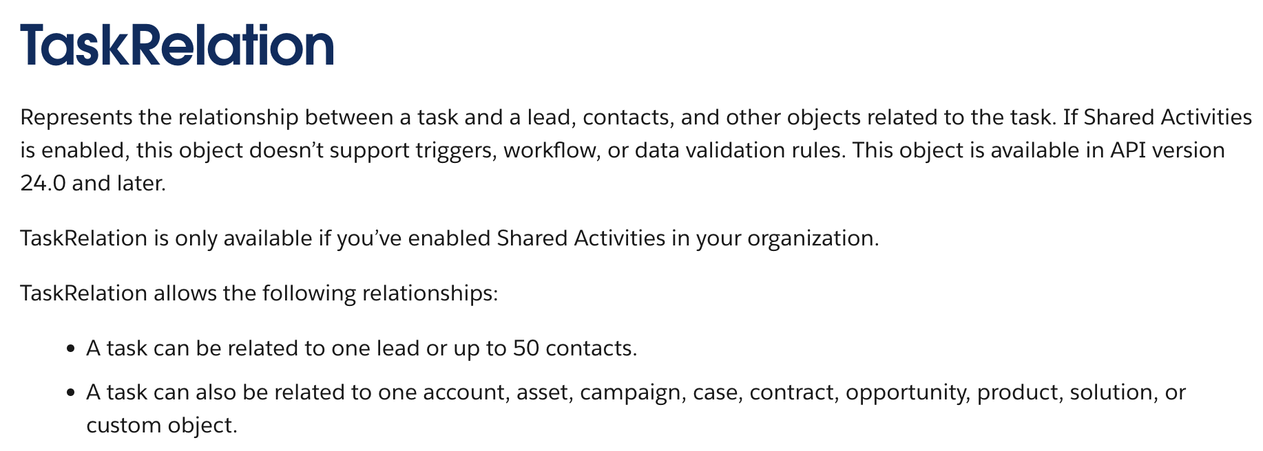 Note that the account field on the POST /tasks request body for Salesforce is optional. If you do not have this setting enabled on Salesforce but still include an Account ID, your POST /task will succeed and the Task will still be pushed to Salesforce. However, the Task will not be associated with an Account.