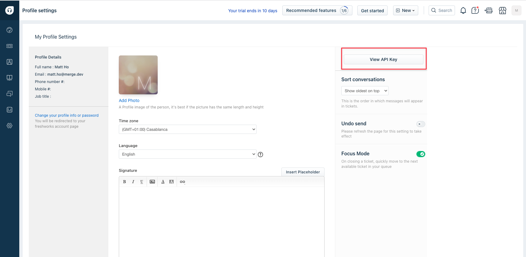 Step 3: Find your Freshdesk API key