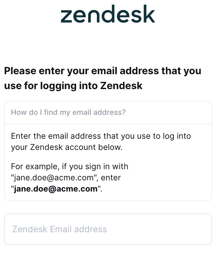 Enter the email address that you use to log into your Zendesk account