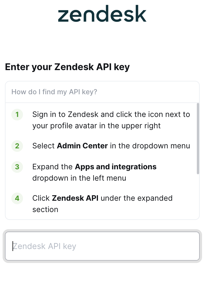Step 3: Find your Zendesk API key