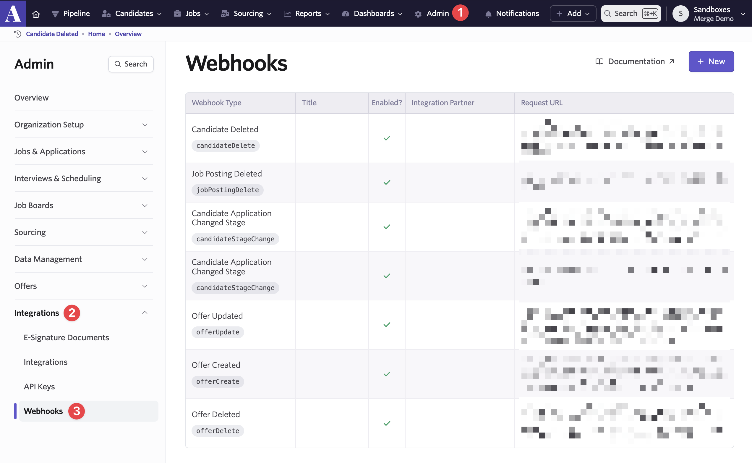 Double check: The URLs and secret tokens should match exactly in both Merge and Ashby.