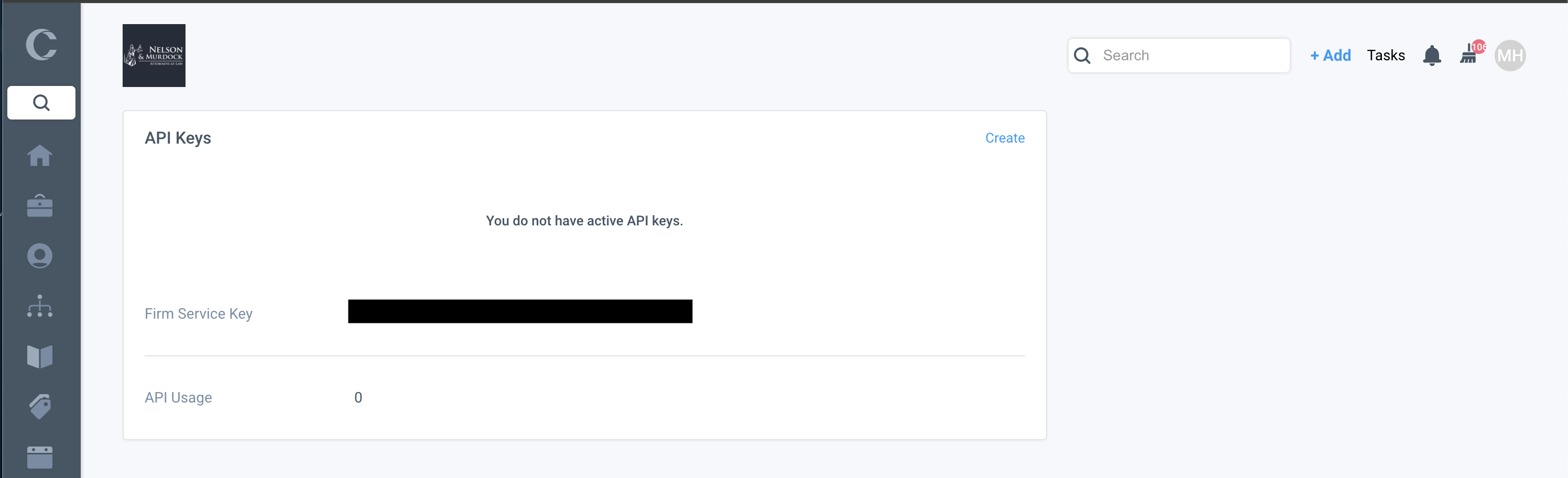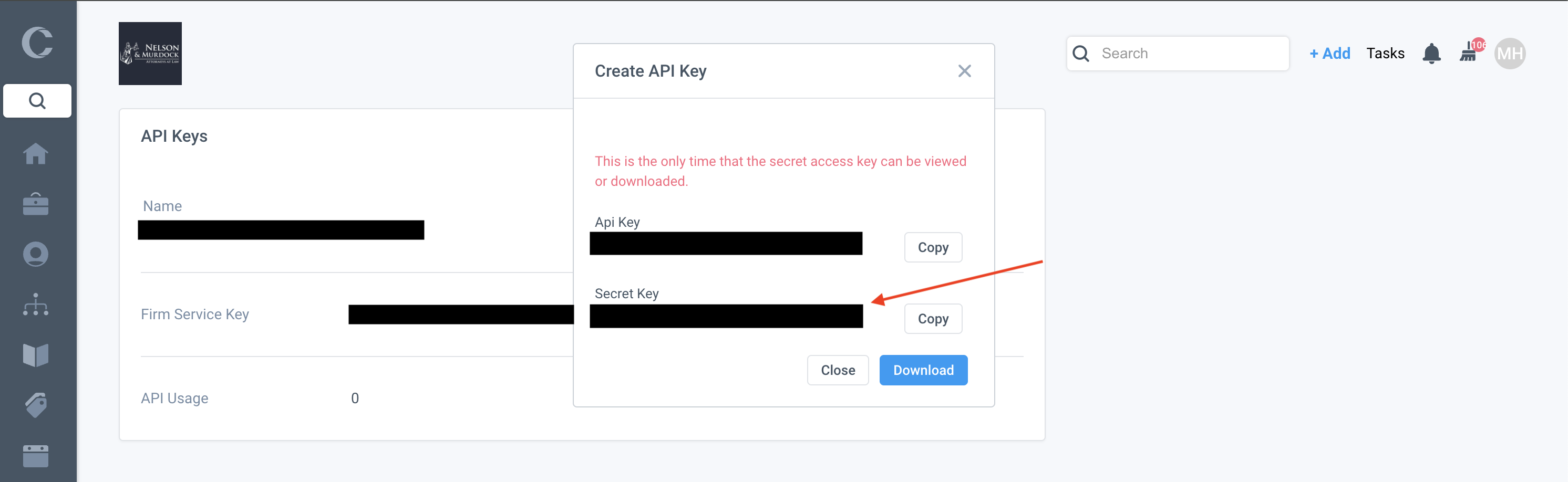 Close the Create API Key popup and then grab your Firm Service Key in the