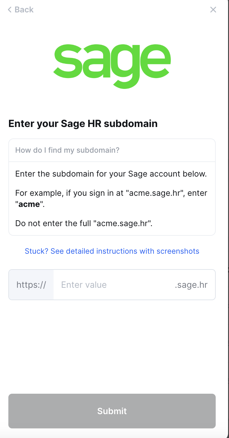 Step 1: Find the subdomain address for your Sage HR account
