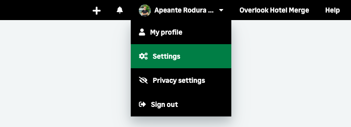 Log in and click on your name in the top right corner, and select Settings in the drop-down menu