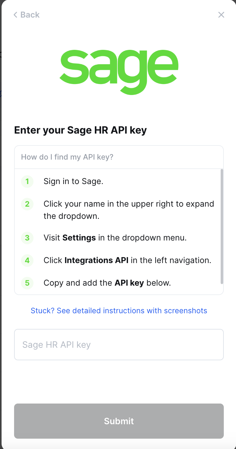 Step 2: Find your Sage HR API key