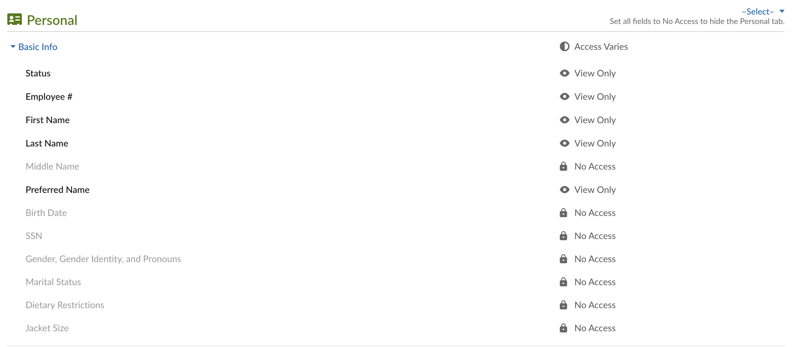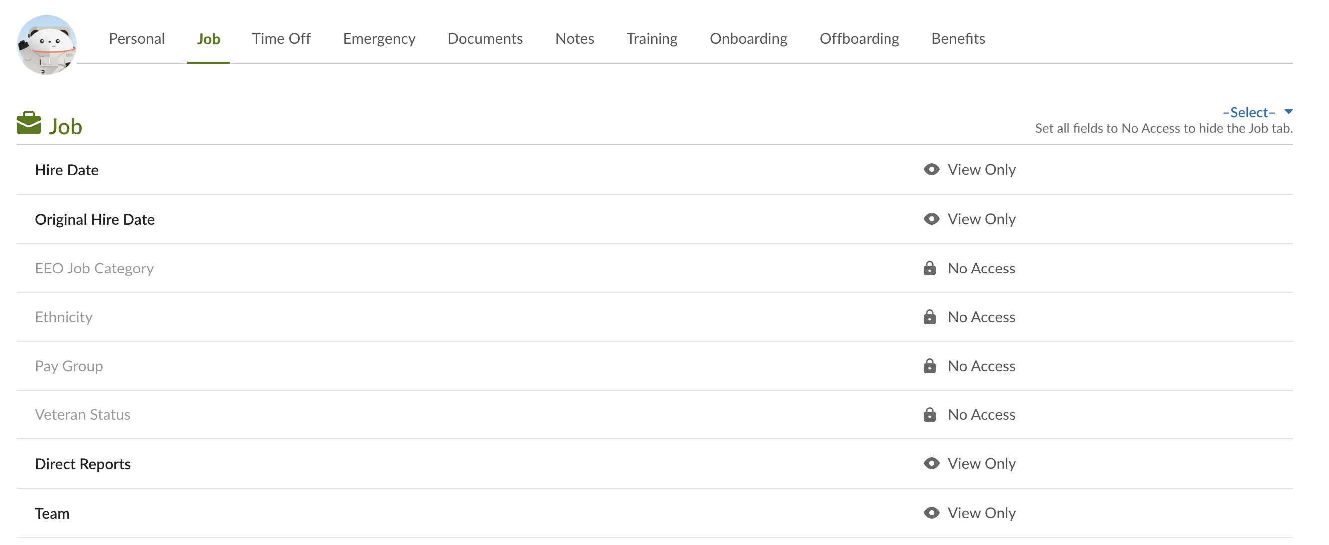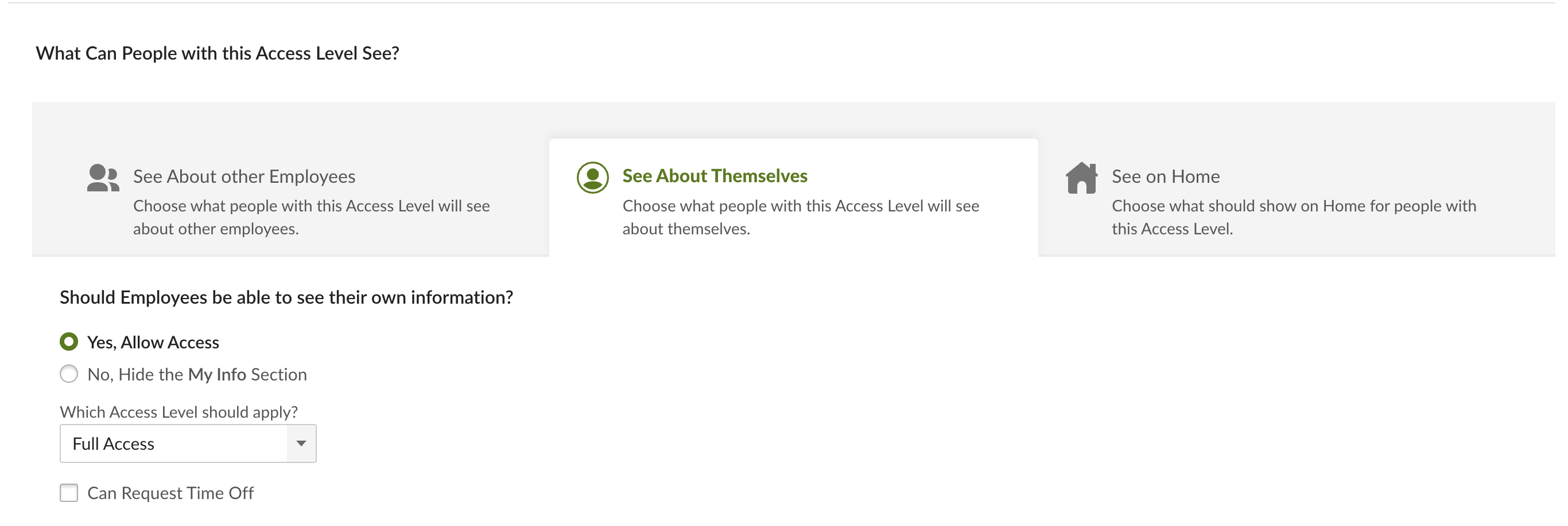This means that the BambooHR Employee with this custom access level can see the same information for themselves.