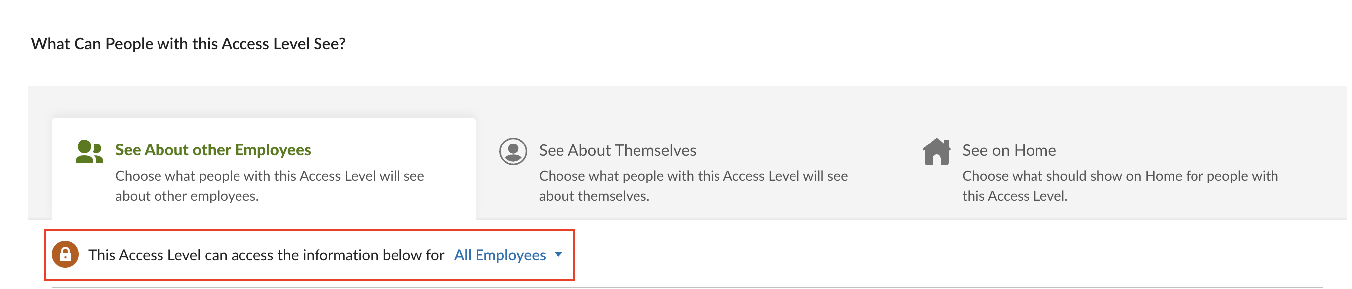 Select "ALL EMPLOYEES" for whom this access level can access the information.