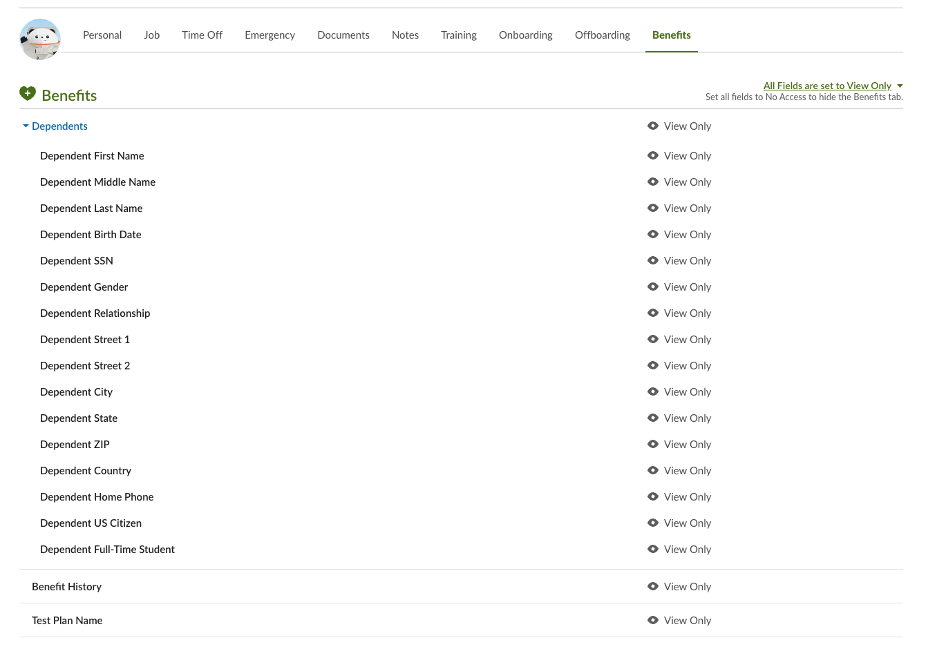 (Optional for Dependents data) Under the Benefits section, enable View access for the following: